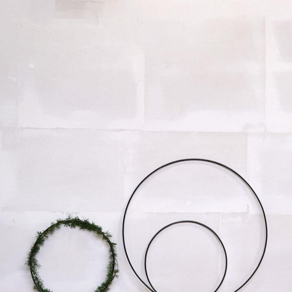 Denne jernring med en diameter på 70 cm kan bruges både til ophæng ned fra loftet eller til at hænge på væggen. Brug lange læderbånd, jutesnore, fiskesnører eller dit yndlingsbånd, hvis du ønsker at ringen skal hænge frit i rummet. Inden ophæng, kan du pynte ringen på mange måder. Ønsker du at fremhæve årets højtider kan du i juletiden binde ringen med gran, kristtjørn, eukalyptus, julepynt, lysholdere etc. Du kan også bruge den som pakkekalender med 24 små pakker hængende ned fra ringen. Til Påske og andre højtider kan du bruge de vækster og grene som årstiden byder på. Ringen er også dekorativ hængende på væggen pyntet med f.eks. evighedsblomster. Du kan også bruge jernringen som en form for vægramme og klistre billeder og små kærlige kort på væggen inden for ringen. Et sjovt alternativ til opslagstavlen. En simpel ring med muligheder så langt fantasien rækker. Ringen findes også i en mindre størrelse på 40 cm.