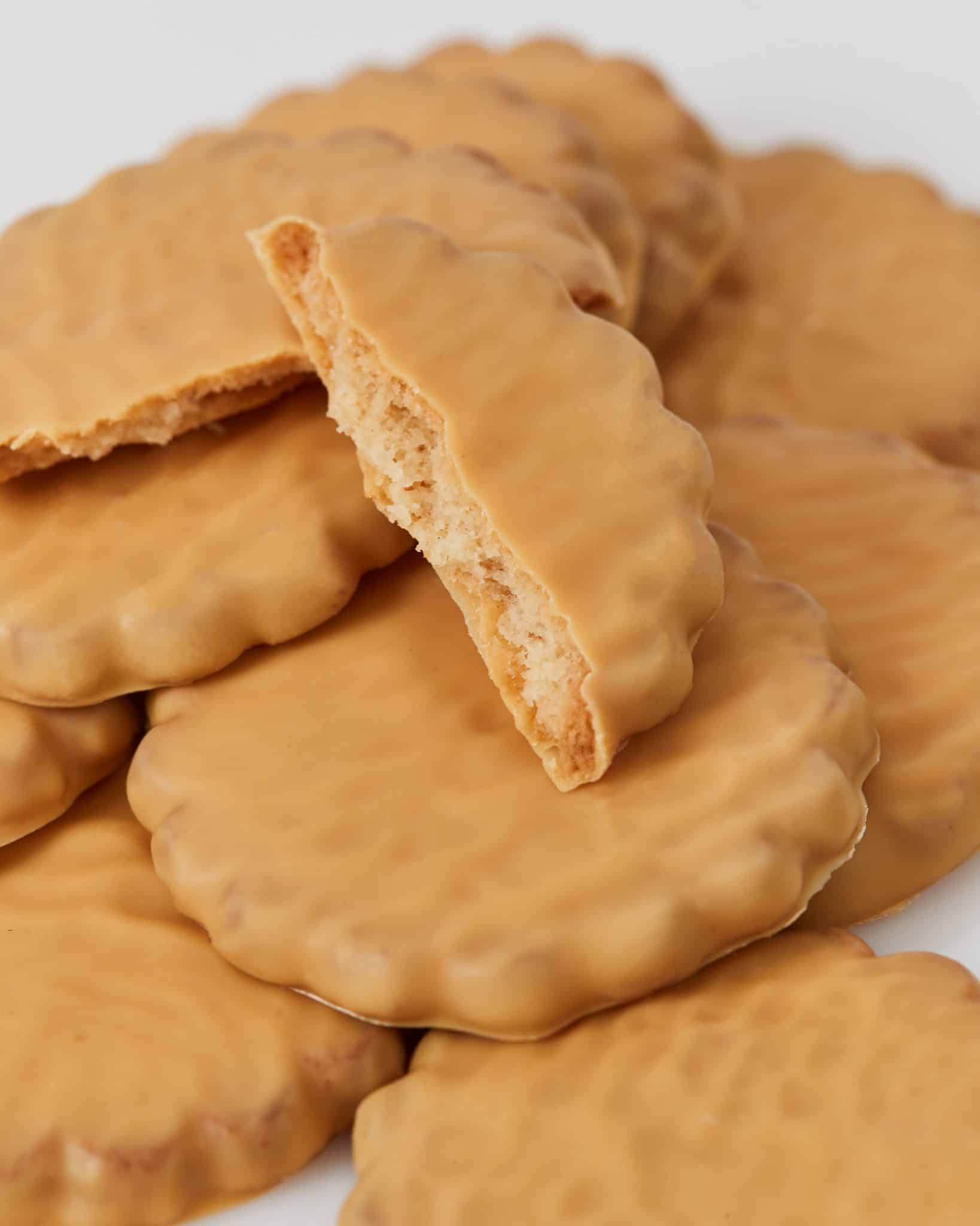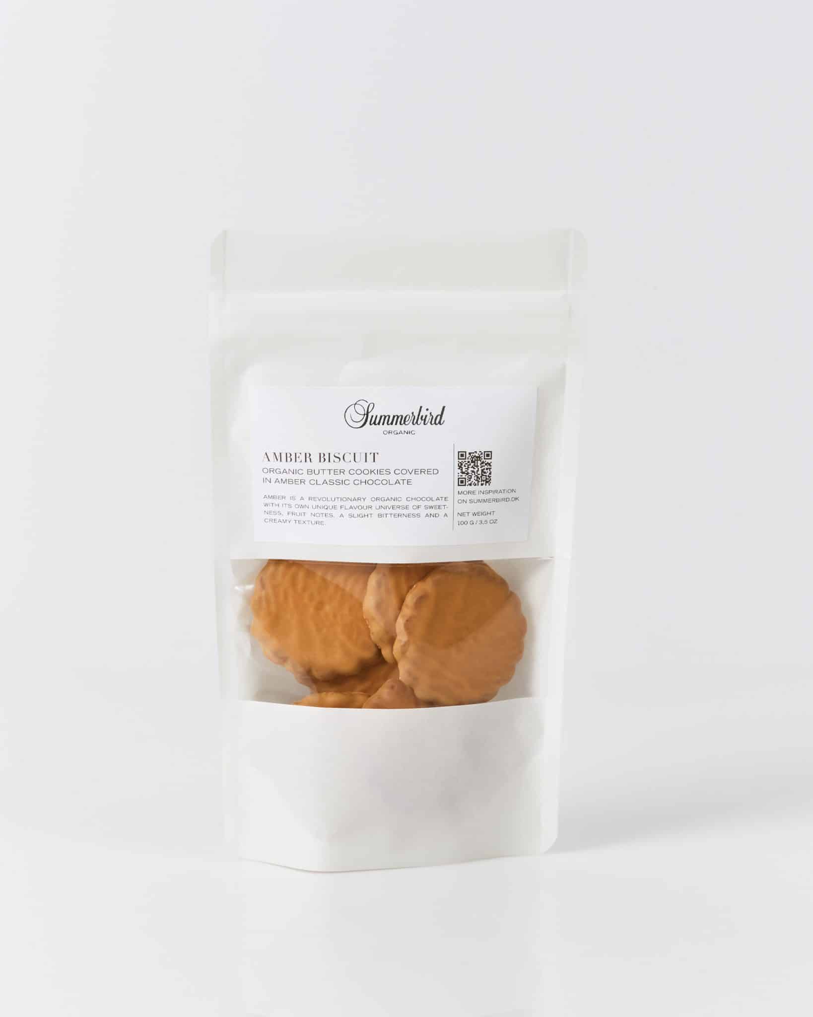 Økologiske biscuits fra Lonlay-l’Abbaye i Normandiet, overtrukket i vores unikke Amber Classic-chokolade. En raffineret smagsoplevelse med dybde fra den karamelliserede Amber Classic-chokolade, samt tekstur og umami fra den franske biscuit.