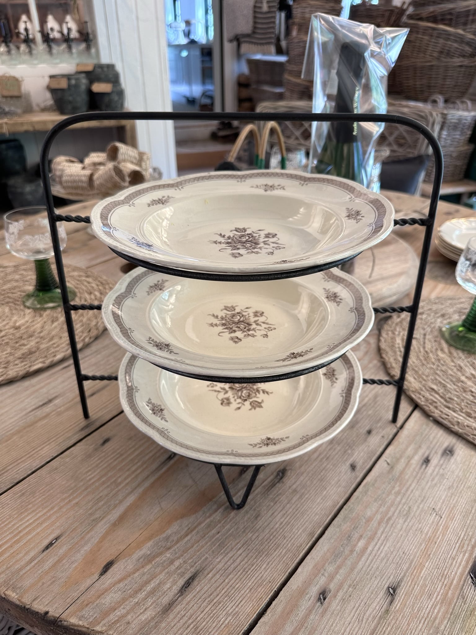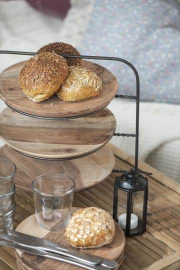 Etagere i metal fra Ib Laursen til delikatesser eller dekoration. Selve etageret måler B:22/H:32/L:33,5cm og passer til almindelige middagstallerkner.