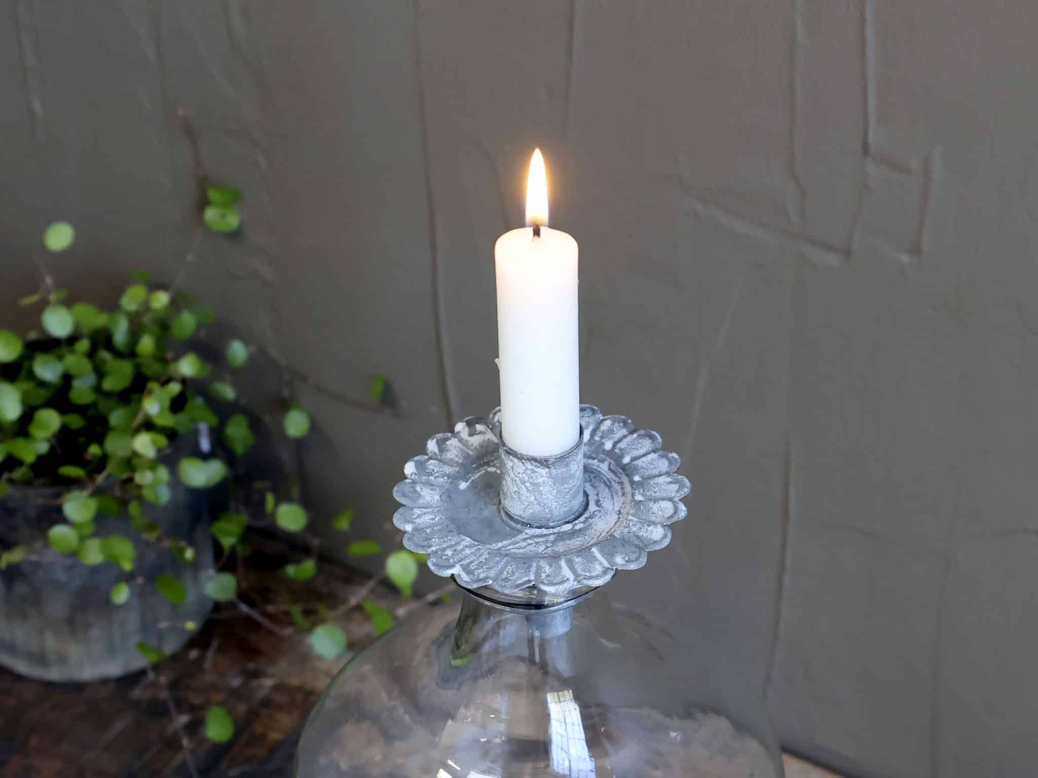 Lysholder m. dekor til bedelys i antik zink fra Chic Antique – H:6,5/Ø:8cm